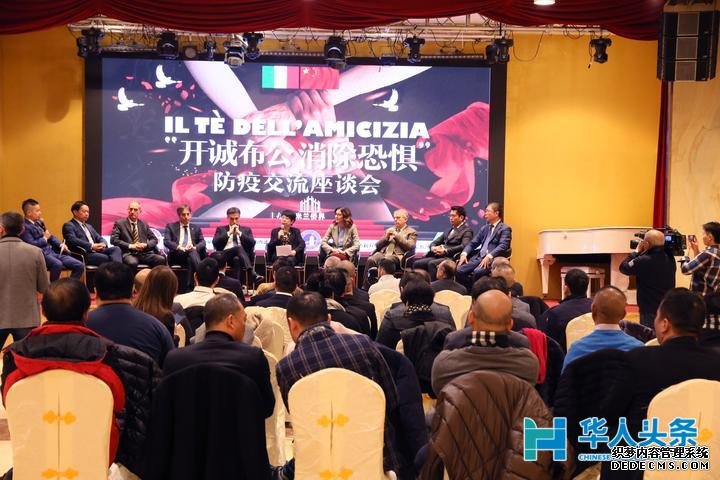 华人头条米兰2月7日电 2月7日,由意大利华人企业协会、米兰浙江华侨华人联谊会、 布雷西亚华人商会主办、米兰蒙扎中国商城承办的"开诚布公,消除恐慌"防疫座谈交流会在米兰君悦豪庭大酒店举办。中国驻米兰总领馆汪惠娟副总领事、伦巴第大区政府副主席萨拉,意大利力量党领导人、众议员杰米尼,欧洲议会议员萨里尼,米兰市议员达尔奉索,米兰商业联合会副主席帕尼各和周立新、陈文旭、毛爱斌、温阳东、金忠信等侨界代表共80余人出席。