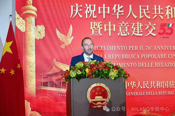 9月19日晚,中国驻米兰总领事馆在米兰皇家花园酒店隆重举行庆祝中华人民共和国成立76周年暨中意建交55周年招待会。米兰及伦巴第大区政府官员、多国驻米兰总领事、米兰领区各侨团代表、留学生、中资企业代表、意大利各界友人等近300人出席。