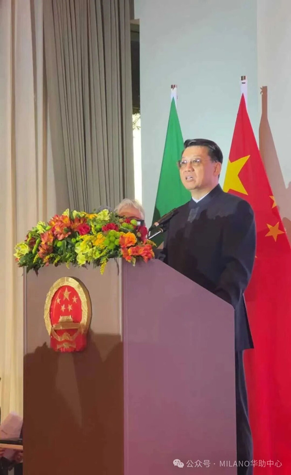 招待会在中意两国国歌的雄壮旋律中正式拉开帷幕。中国驻米兰总领事刘侃发表重要讲话。他回顾了过去一年中国在创新发展方面取得的显著成果,包括新能源、高铁、人工智能、量子科技等领域的进展,全面展示了中国科技创新的实力与成就。刘总领事强调,中国将坚持科技自立自强和绿色低碳发展,推动经济高质量发展。同时,他指出,中意两国长期保持友好往来,合作广泛深入,不仅在经贸、投资、教育、文化等领域取得了丰硕成果,也为两国人民带来了实实在在的利益。刘侃总领事表示,中国愿与意大利继续深化各领域交流合作,携手推动中意关系迈上新台阶,为两国及世界和平发展贡献力量。